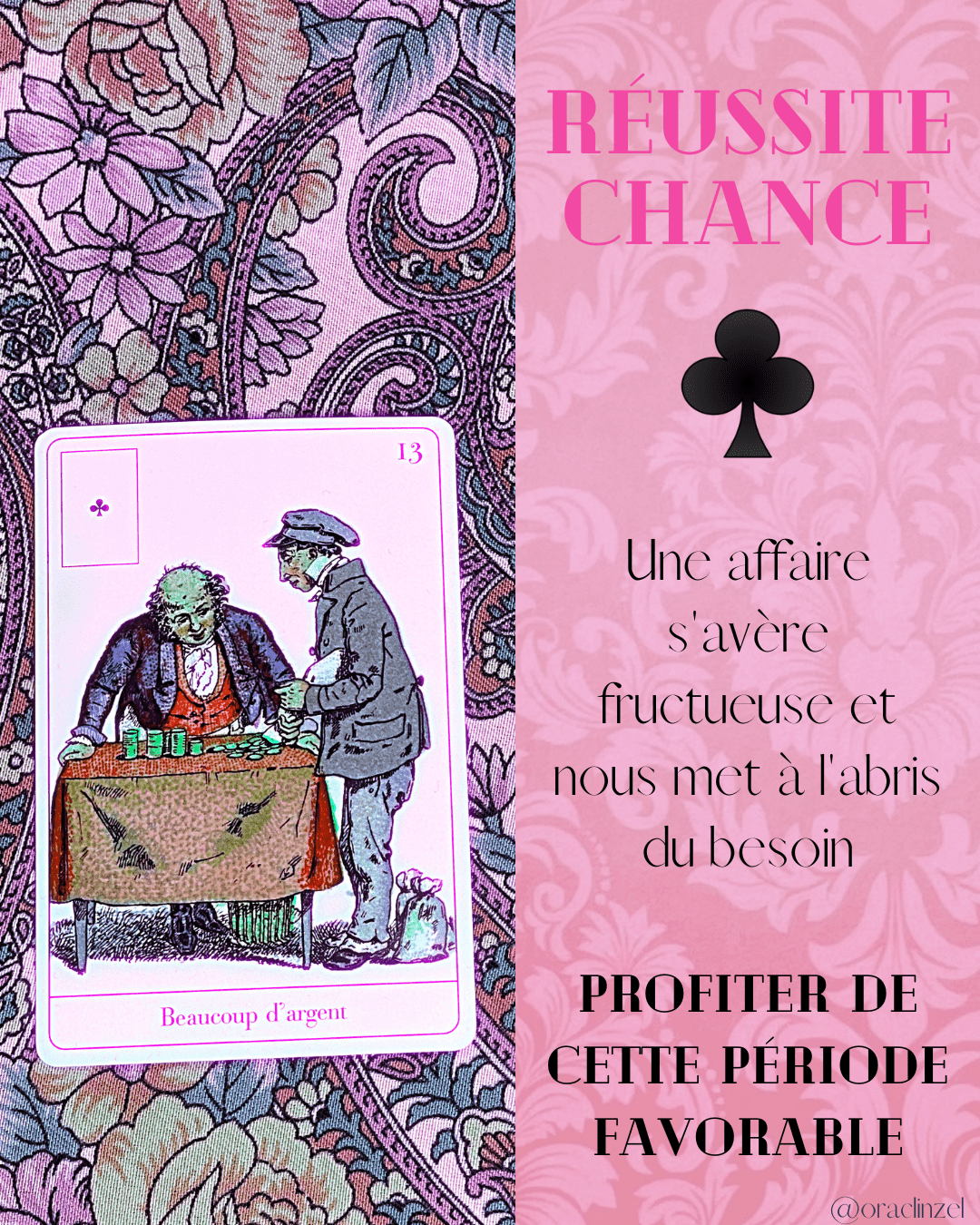 Pour l’as de cœur – basique-simple – cela annonce des mots doux, de l’affection, « ça dégouline d’amour, C’est beau mais… » au moins c’est cohérent ! On voit que des choses en rapport avec l’amour, les sentiments et c’est rassurant !