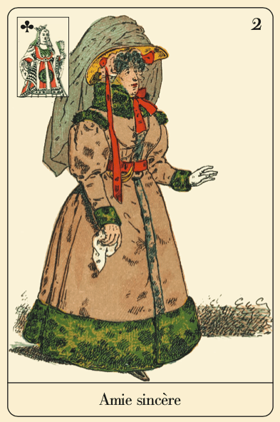 Maintenant, toujours sur le mĂȘme tirage, imagine que la carte Caquets (7 de âŠïž) est suivie de celle dâune Amie sincĂšre (Reine de âŁïž).